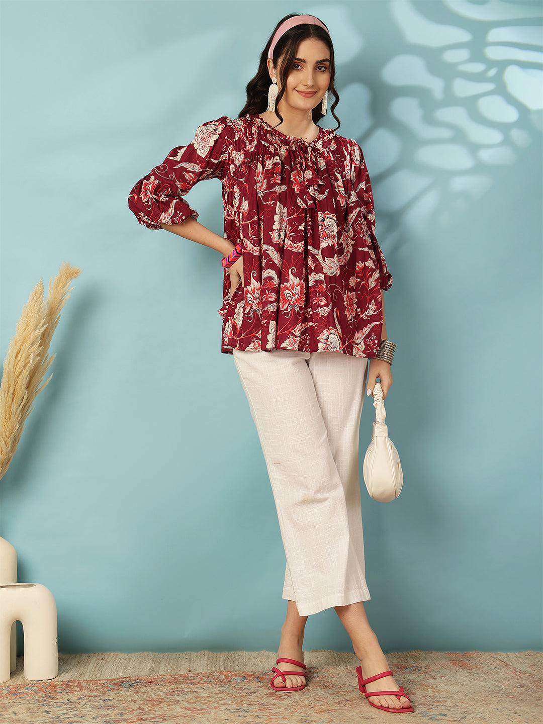 Red Women Printed 3/4 Sleeves Regular Pure Cotton Top is crafted for those who love...