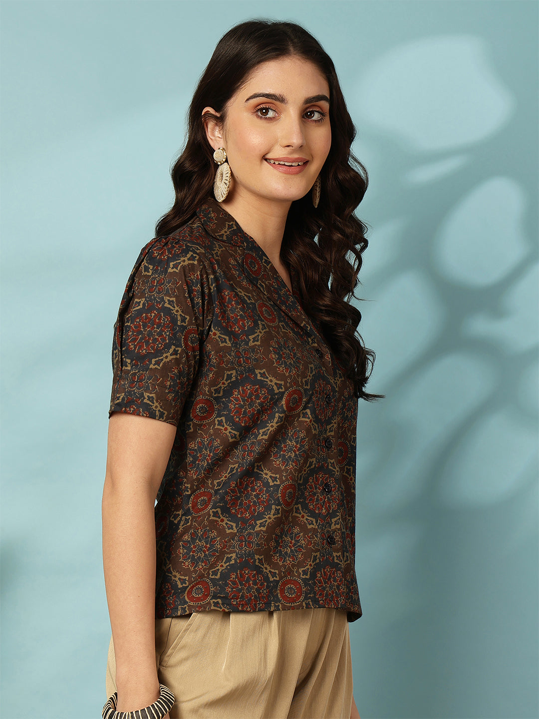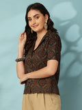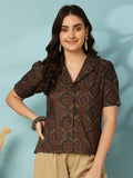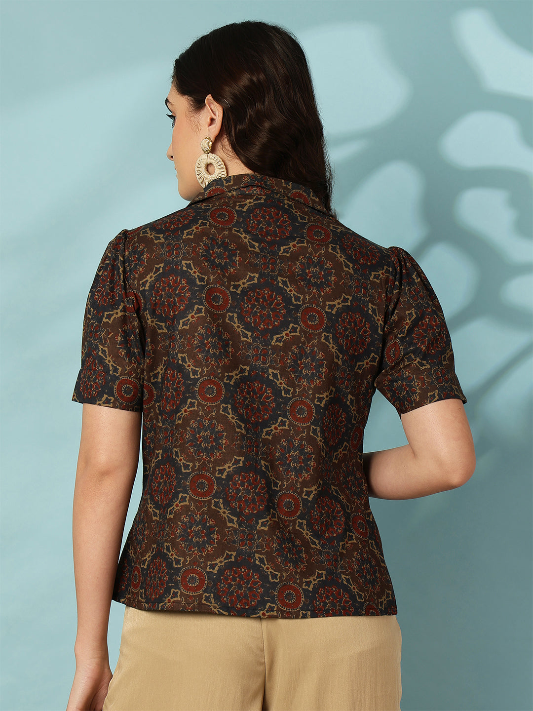 Upgrade your wardrobe with Blue Women Printed Short sleeve Regular Pure Cotton Top, designed for a chic and versatile appeal. The silhouette falls beautifully, giving a flattering shape while keeping the outfit breathable. A perfect pick for casual gatherings, office wear and everyday elegance.