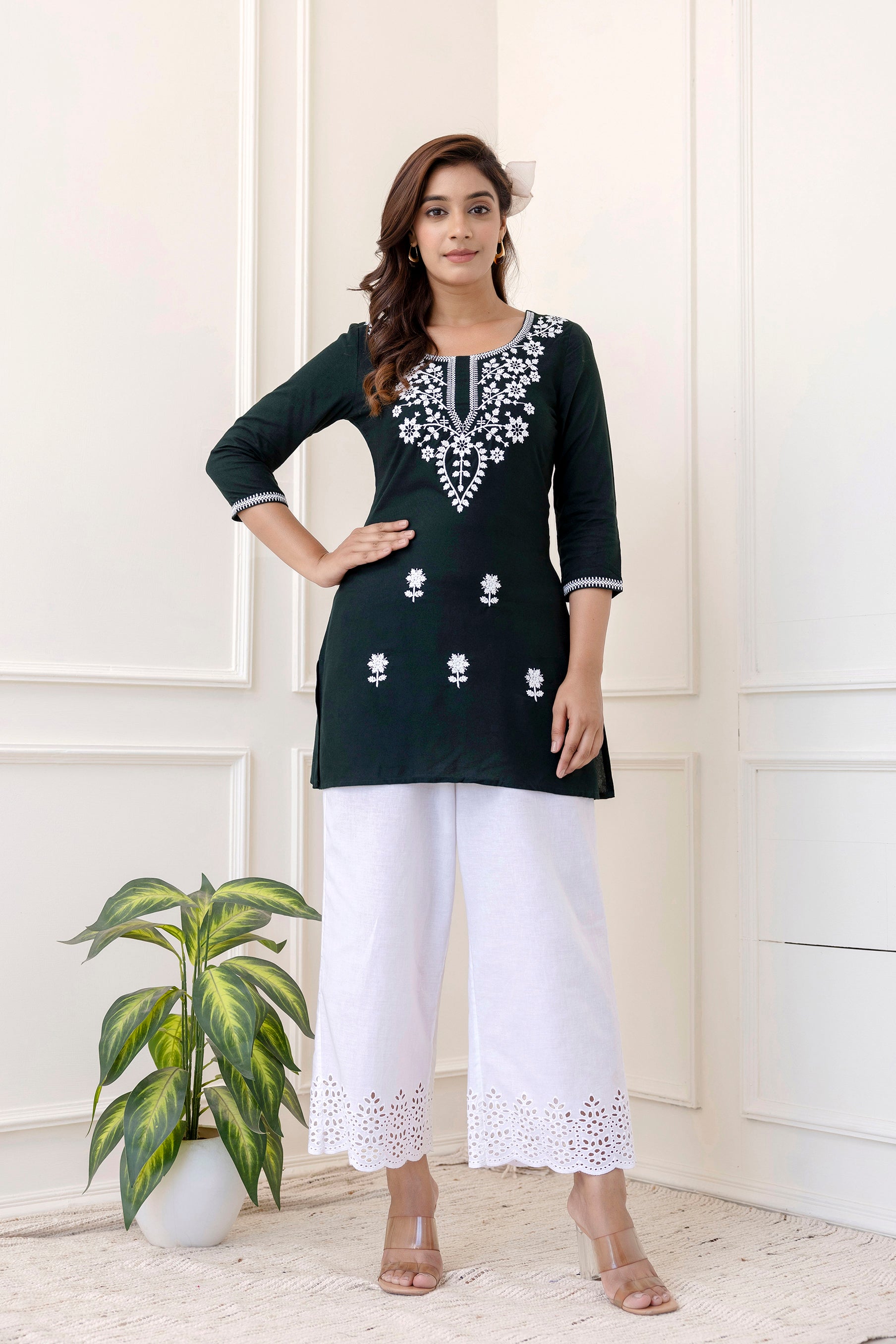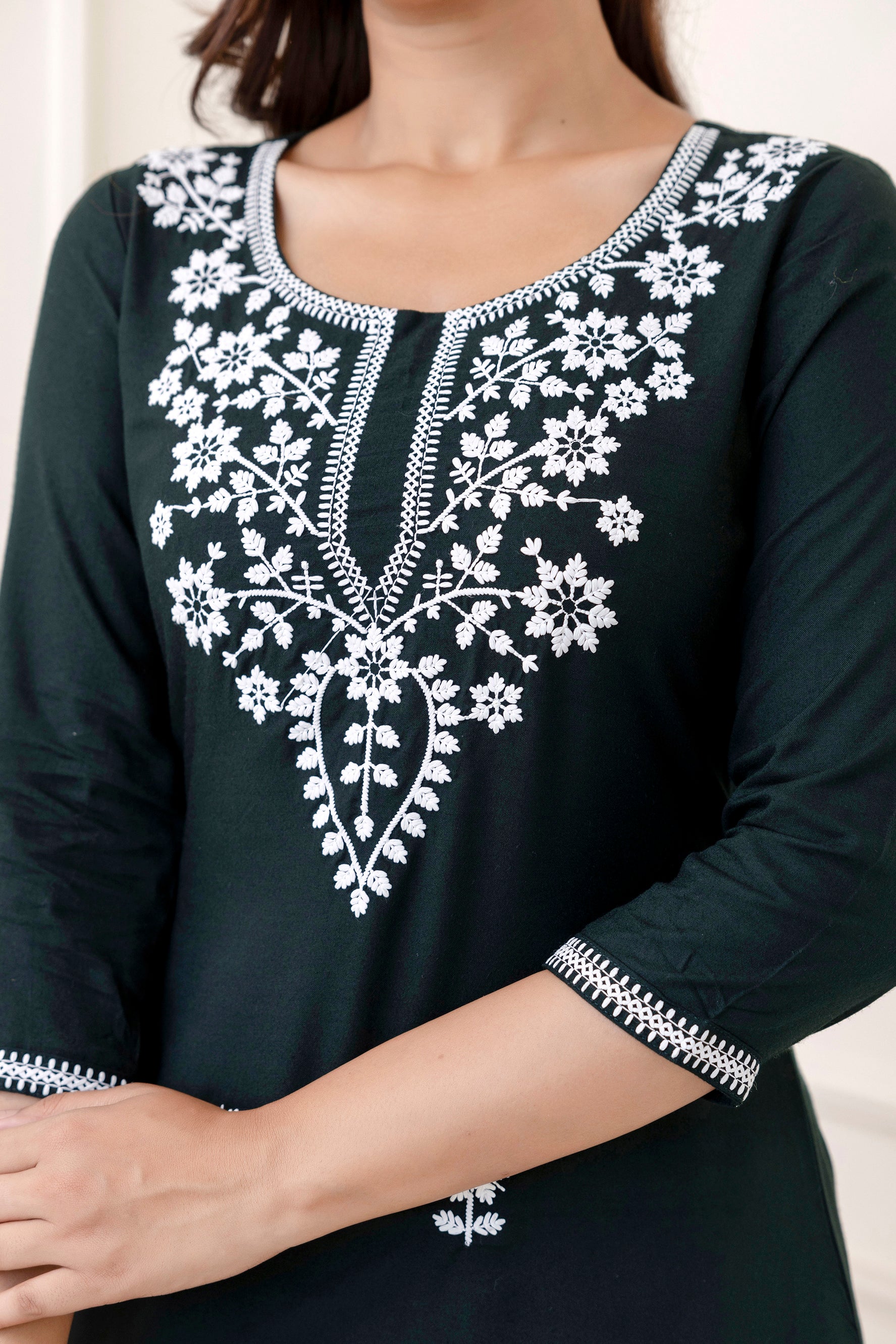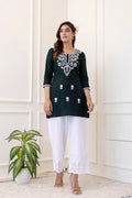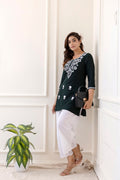 Bottle Green Rayon Hip Length Round Neck A-Line Top is crafted for those who love timeless fashion with everyday ease. The outfit drapes naturally, offering both movement and style. Suitable for work hours or simple day outings, it promises a refreshing and sophisticated touch.