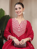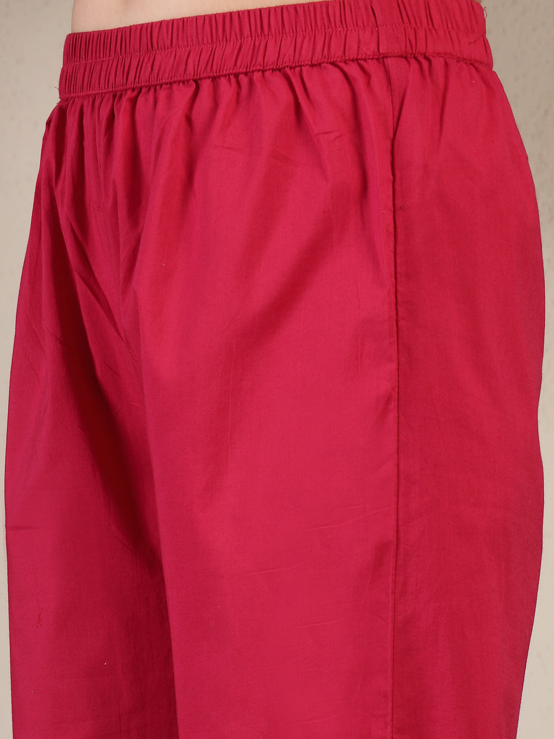 Upgrade your wardrobe with Coral Cotton Calf Length Solid 3/4 Sleeve Round Neck Flared Kurta Suit Set, designed for a chic and versatile appeal. The silhouette falls beautifully, giving a flattering shape while keeping the outfit breathable. A perfect pick for casual gatherings, office wear and everyday elegance.