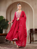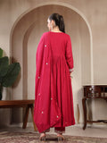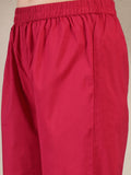 Coral Cotton Calf Length Solid 3/4 Sleeve Round Neck Flared Kurta Suit Set