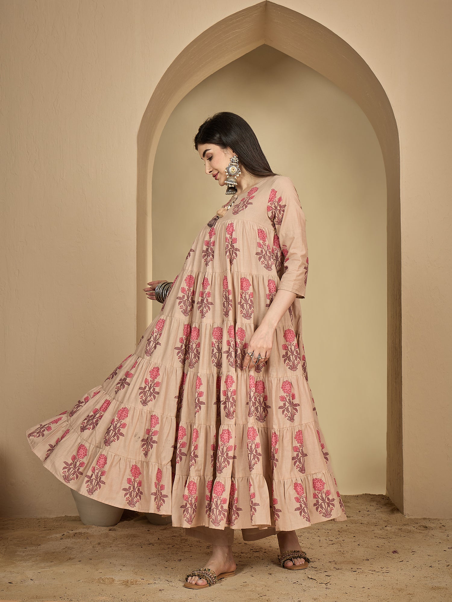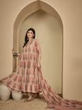 Cotton Ankle Length Printed 3/4 Sleeve Key Hole Neck Anarkali Kurta Suit Set