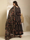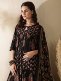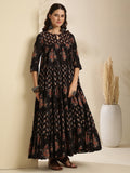 Cotton Calf Length Printed 3/4 Sleeve Key Hole Neck Tiered Kurta Bottom With Dupatta