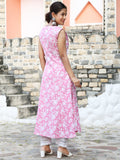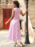 Cotton Calf Length Printed A-Line Sleeveless Round Neck Kurta