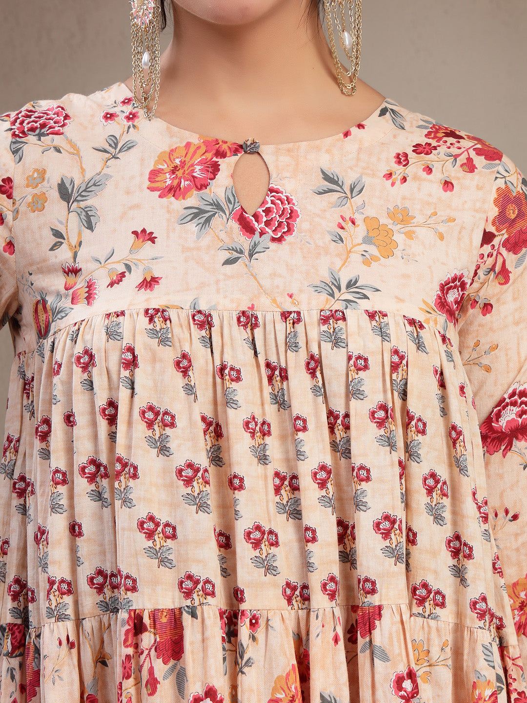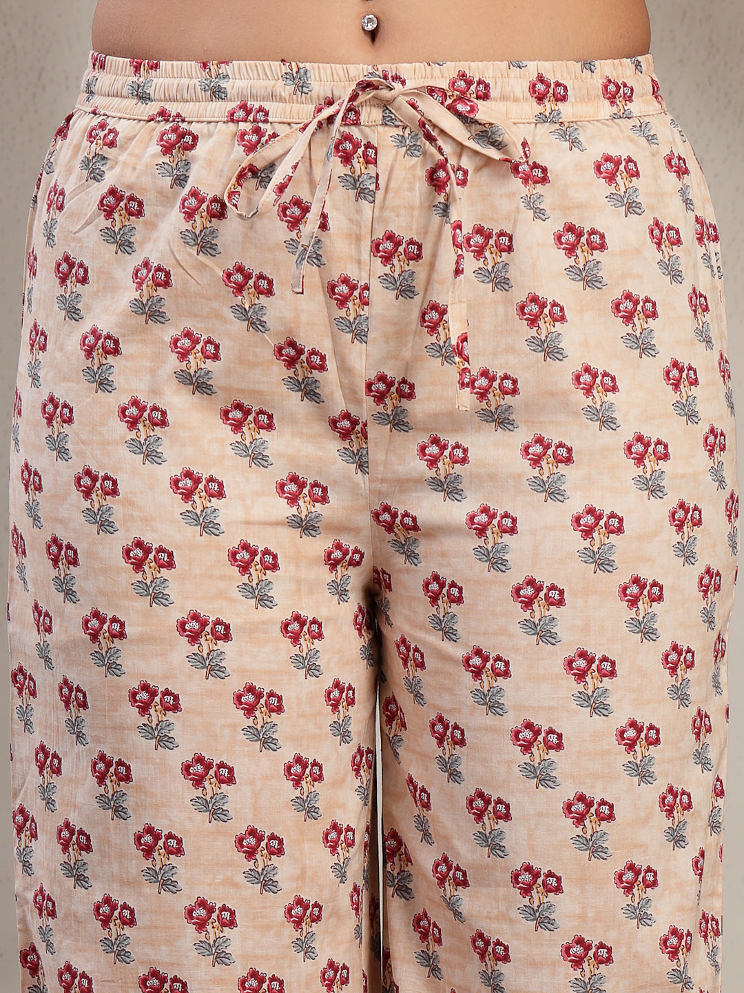Step into comfort with Cream Cotton Calf Length Printed 3/4 Sleeve Key Hole Neck Flared Kurta Suit Set, created to bring understated elegance to your collection. The flow and fit are designed to flatter without compromising comfort. Pair it with minimal accessories for a clean and graceful look.
