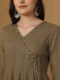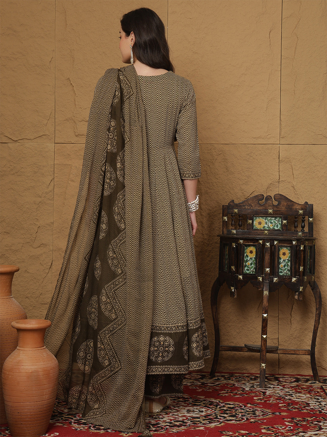 Green Cotton Calf Length Printed 3/4 Sleeves V-Neck Anarkali Kurta Suit Set adds a refined charm to your wardrobe with its thoughtfully crafted silhouette. Light, comfortable and stylish, it works well for daily use, informal meet-ups or relaxed occasions, keeping you effortlessly fashionable.