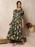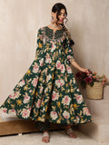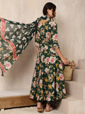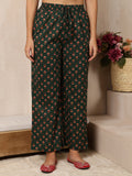 Green Cotton Calf Length Printed Flared 3/4 Sleeves Round Neck Kurta Bottom Dupatta Set adds a refined charm to your wardrobe with its thoughtfully crafted silhouette. Light, comfortable and stylish, it works well for daily use, informal meet-ups or relaxed occasions, keeping you effortlessly fashionable.