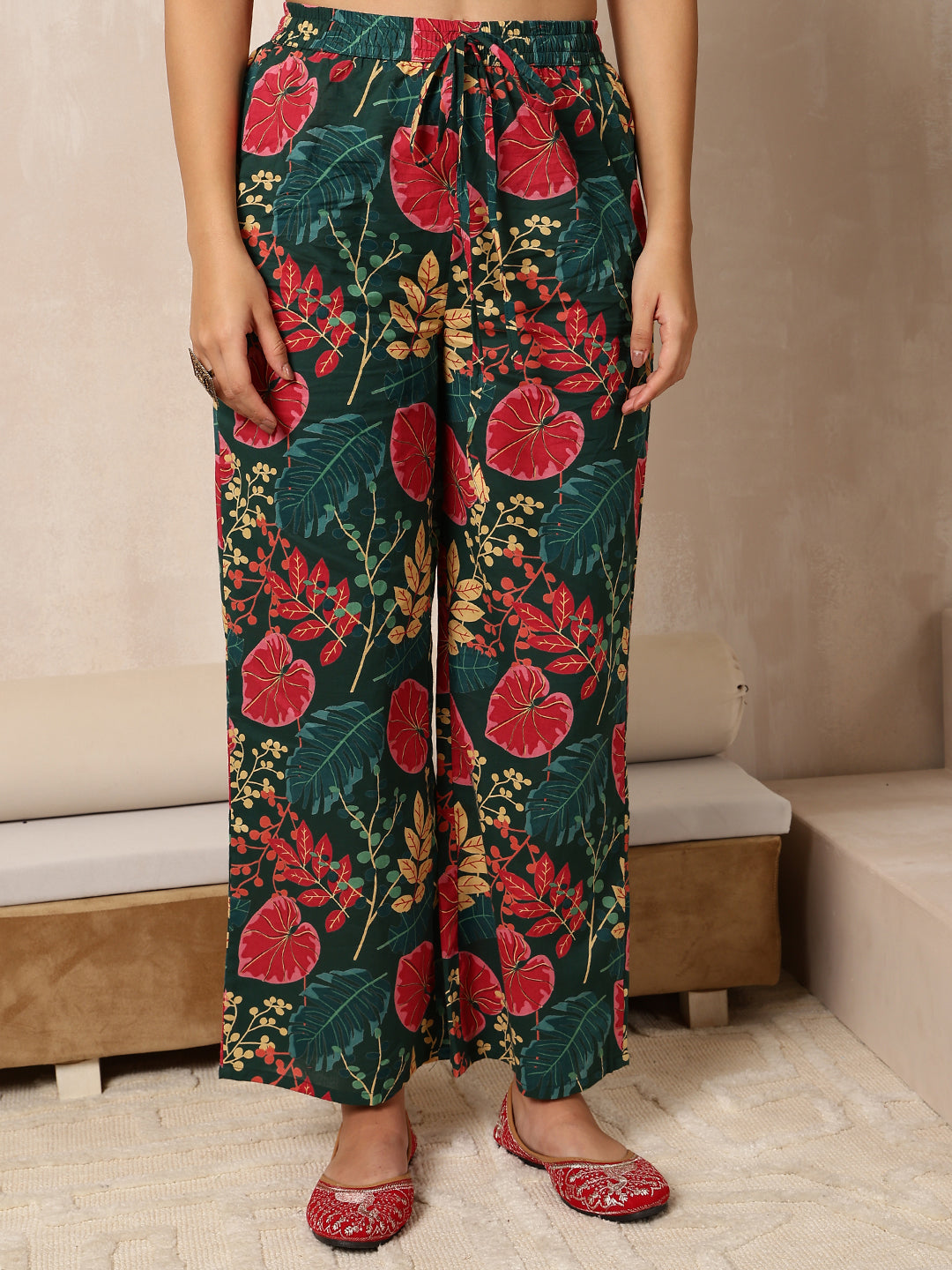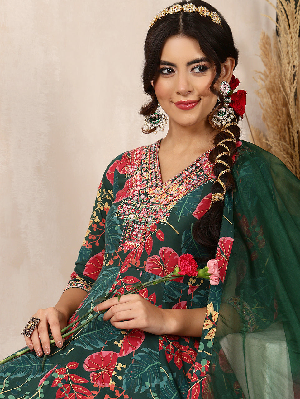 Green Cotton Calf Length Printed Flared 3/4 Sleeves V-Neck Kurta Bottom Dupatta Set brings a fresh blend of comfort and elegance, crafted with attention to detail. Its design makes it perfect for daily wear as well as casual outings, offering effortless style. Soft fabric ensures comfort through the day, keeping the look refined and graceful.