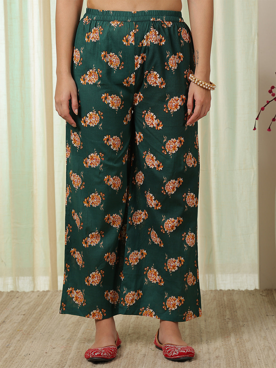 Green Cotton Calf Length Printed Flared 3/4 Sleeves V-Neck Kurta Suit Set brings a fresh blend of comfort and elegance, crafted with attention to detail. Its design makes it perfect for daily wear as well as casual outings, offering effortless style. Soft fabric ensures comfort through the day, keeping the look refined and graceful.