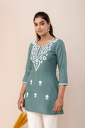 Grey Rayon Hip Length Round Neck A-Line Top