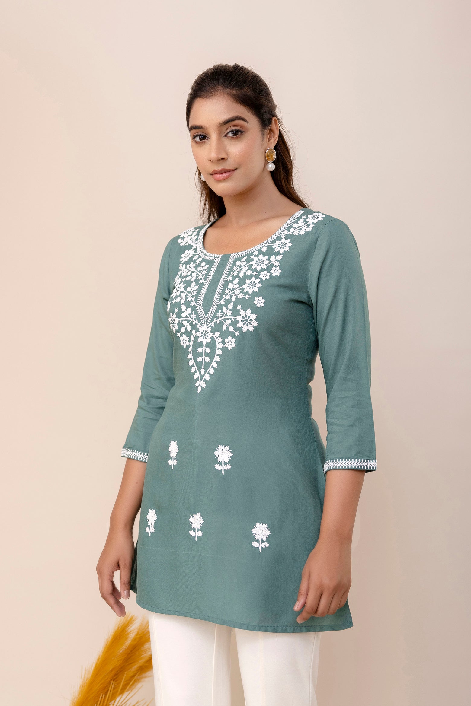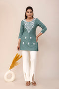 Upgrade your wardrobe with Grey Rayon Hip Length Round Neck A-Line Top, designed for a chic and versatile appeal. The silhouette falls beautifully, giving a flattering shape while keeping the outfit breathable. A perfect pick for casual gatherings, office wear and everyday elegance.