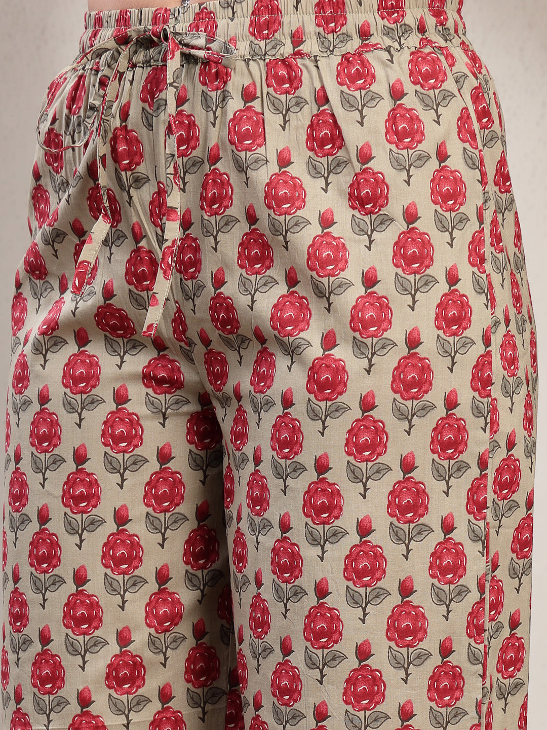 Upgrade your wardrobe with Kashish Cotton Calf Length Printed 3/4 Sleeve V-Neck A-Line Kurta Suit Set, designed for a chic and versatile appeal. The silhouette falls beautifully, giving a flattering shape while keeping the outfit breathable. A perfect pick for casual gatherings, office wear and everyday elegance.