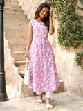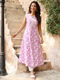 Lavender Cotton Calf Length Printed A-Line Sleeveless Round Neck Kurta