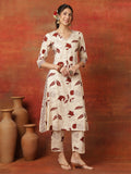 Maroon Rayon Calf Length Printed 3/4 Sleeves V-Neck Straight Kurta Suit Set