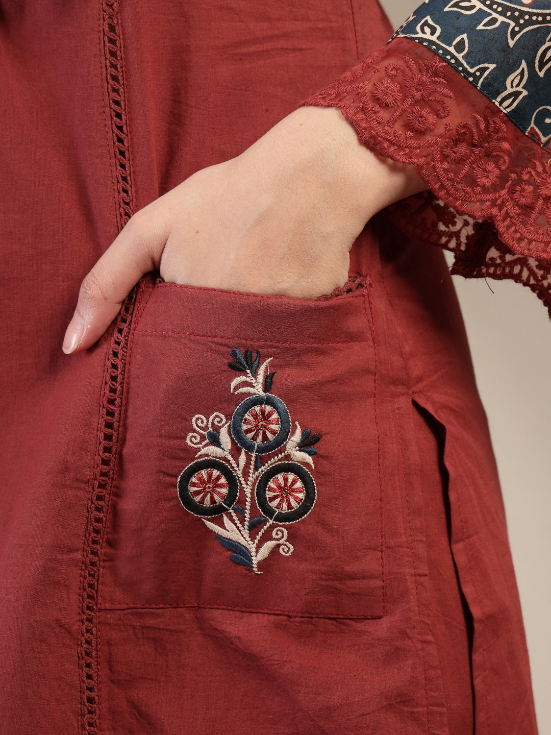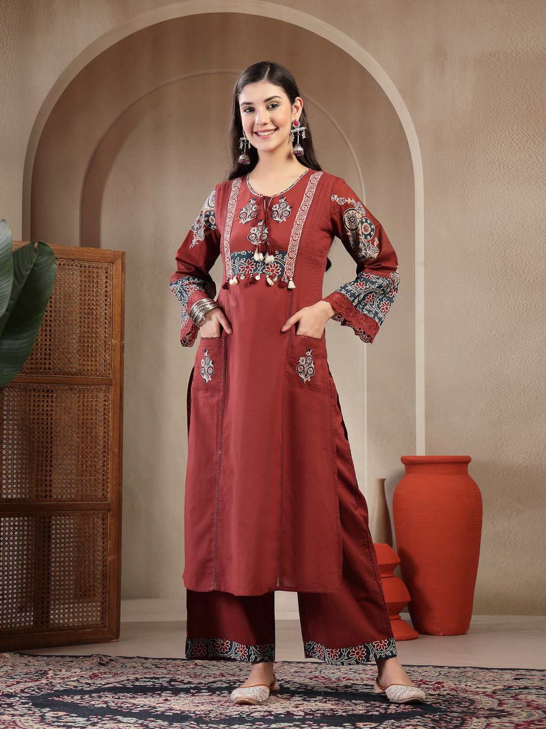 Make a subtle yet stylish statement with Maroon Rayon Calf Length Solid 3/4 Sleeve Round Neck Straight Kurta Suit Set. The design offers a balanced mix of modern charm and traditional comfort. Its easy-fit structure makes it ideal for long hours, while the overall look stays effortlessly polished.