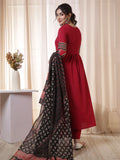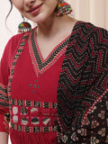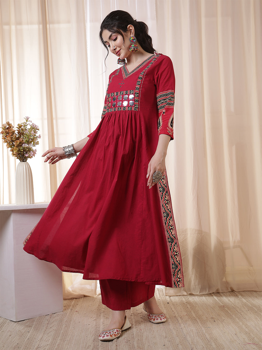 Upgrade your wardrobe with Maroon Rayon Calf Length Solid 3/4 Sleeves V Neck Flared Kurta Suit Set, designed for a chic and versatile appeal. The silhouette falls beautifully, giving a flattering shape while keeping the outfit breathable. A perfect pick for casual gatherings, office wear and everyday elegance.