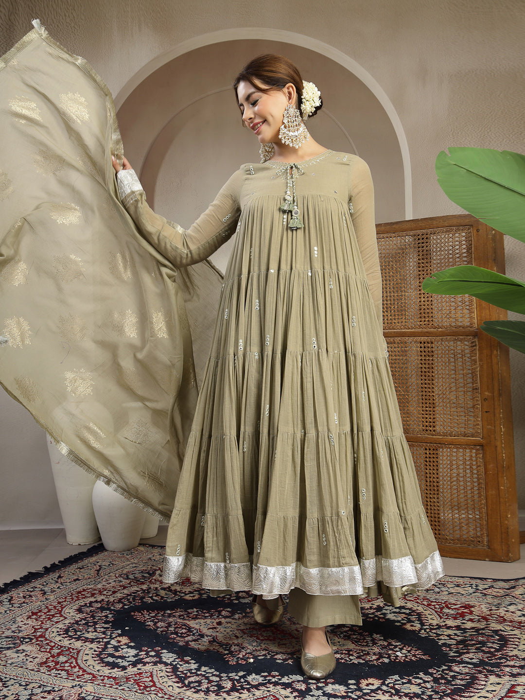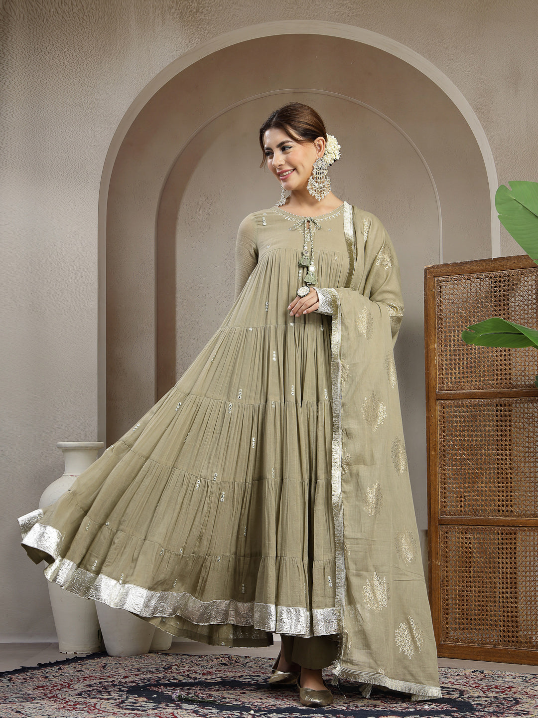 Mint Green Malmal Calf Length Solid Full Sleeve Key Hole Neck Anarkali Kurta Suit Set adds a refined charm to your wardrobe with its thoughtfully crafted silhouette. Light, comfortable and stylish, it works well for daily use, informal meet-ups or relaxed occasions, keeping you effortlessly fashionable.