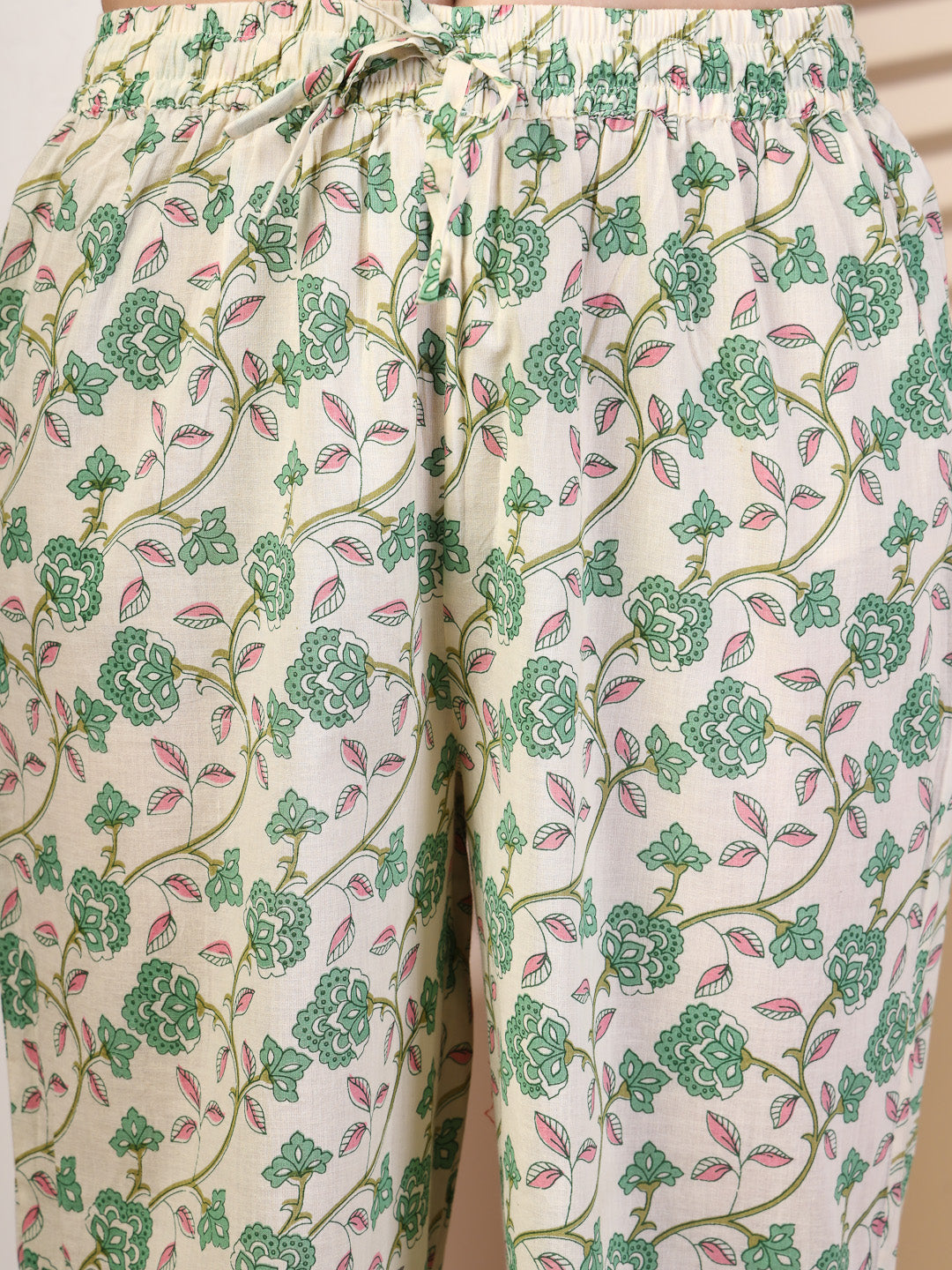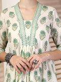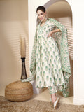 Olive Cotton Calf Length Printed Flared 3/4 Sleeves V Neck Kurta Suit Set is crafted for those who love timeless fashion with everyday ease. The outfit drapes naturally, offering both movement and style. Suitable for work hours or simple day outings, it promises a refreshing and sophisticated touch.