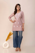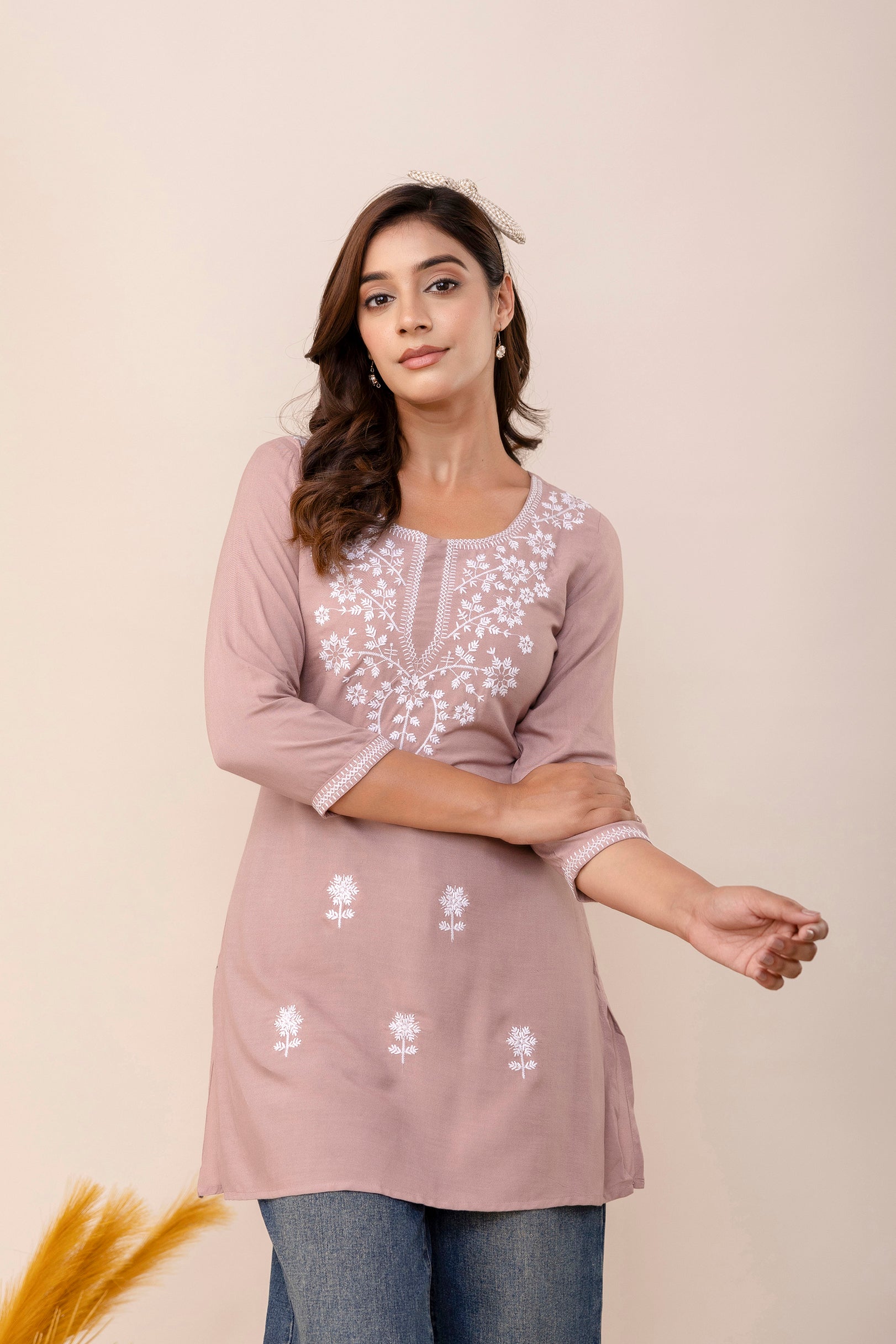 Step into comfort with Peach Rayon Hip Length Round Neck A-Line Top, created to bring understated elegance to your collection. The flow and fit are designed to flatter without compromising comfort. Pair it with minimal accessories for a clean and graceful look.