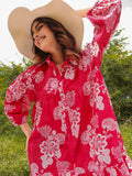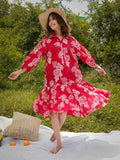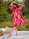 Pink Cotton Knee Length Printed 3/4 Sleeve Shirt Collar Flared Dress