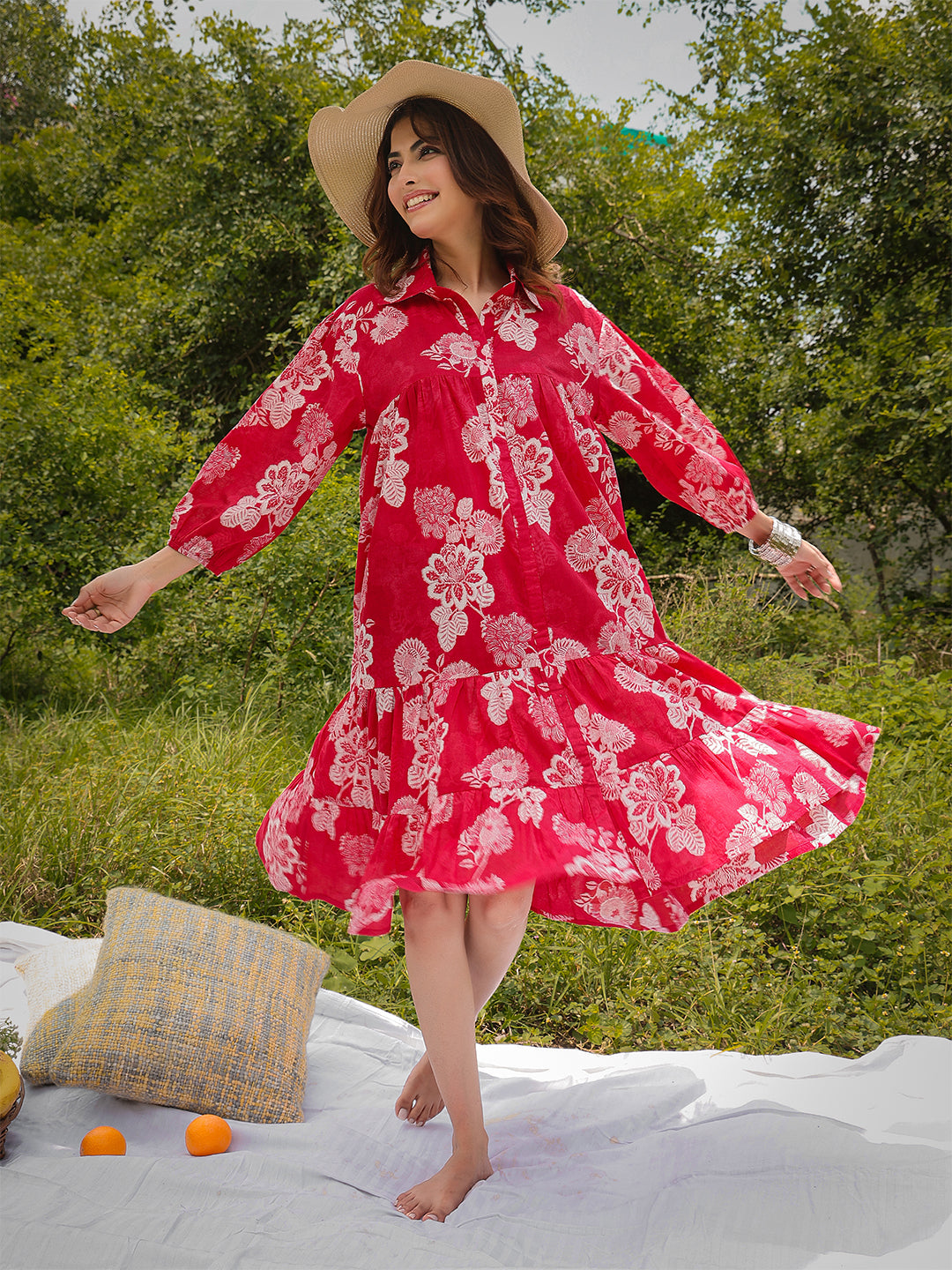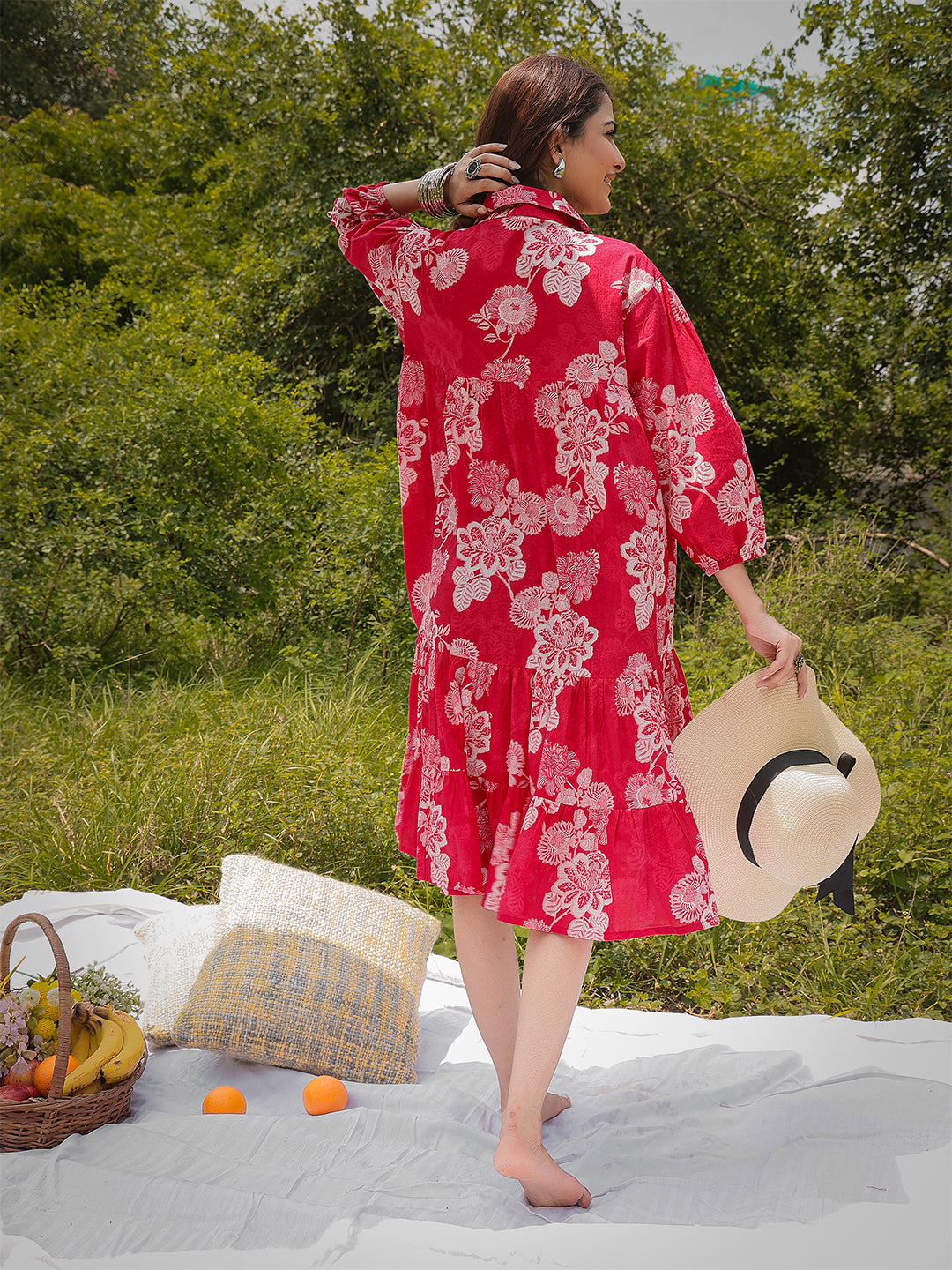 Step into comfort with Pink Cotton Knee Length Printed 3/4 Sleeve Shirt Collar Flared Dress, created to bring understated elegance to your collection. The flow and fit are designed to flatter without compromising comfort. Pair it with minimal accessories for a clean and graceful look.