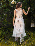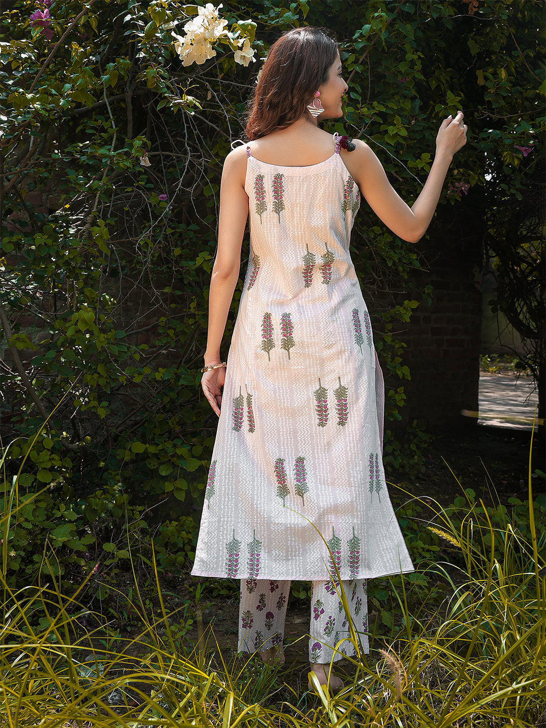 Purple Rayon Calf Length Printed Strappy Sleeve Round Neck Straight Kurta Bottom Set