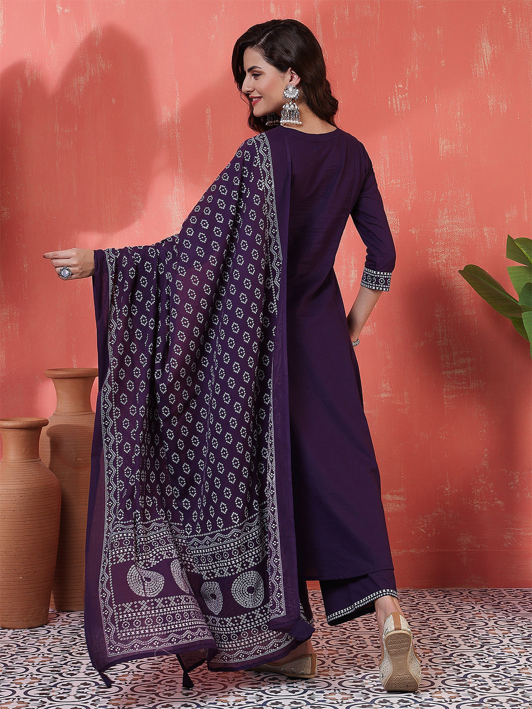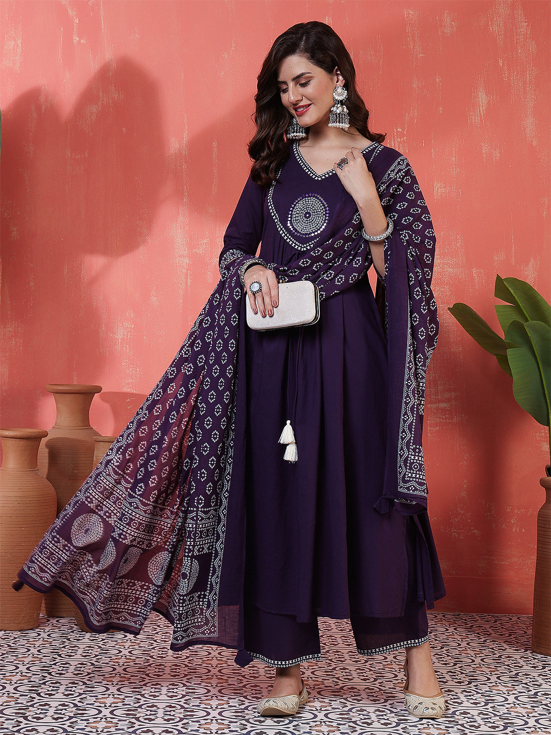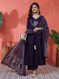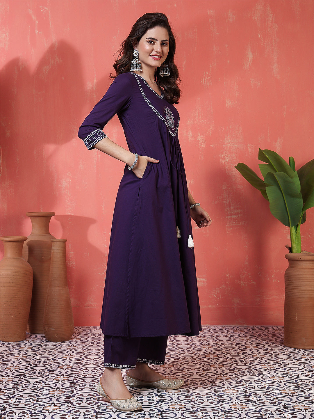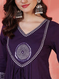 Purple Rayon Calf Length Solid 3/4 Sleeves V-Neck Semi-Flared Kurta Suit Set brings a fresh blend of comfort and elegance, crafted with attention to detail. Its design makes it perfect for daily wear as well as casual outings, offering effortless style. Soft fabric ensures comfort through the day, keeping the look refined and graceful.