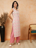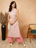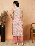 Rayon Calf Length Printed Straight Sleeveless Shirt Collar Kurta Bottom Set
