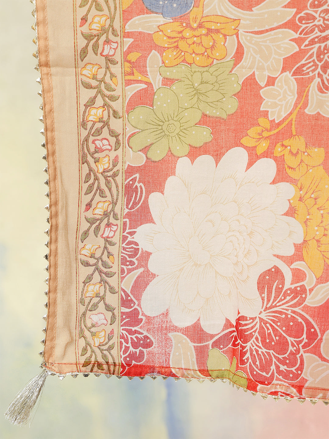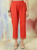 Red Cotton Flared Printed A-Line 3/4 Sleeves Round Neck Kurta Suit Set adds a refined charm to your wardrobe with its thoughtfully crafted silhouette. Light, comfortable and stylish, it works well for daily use, informal meet-ups or relaxed occasions, keeping you effortlessly fashionable.