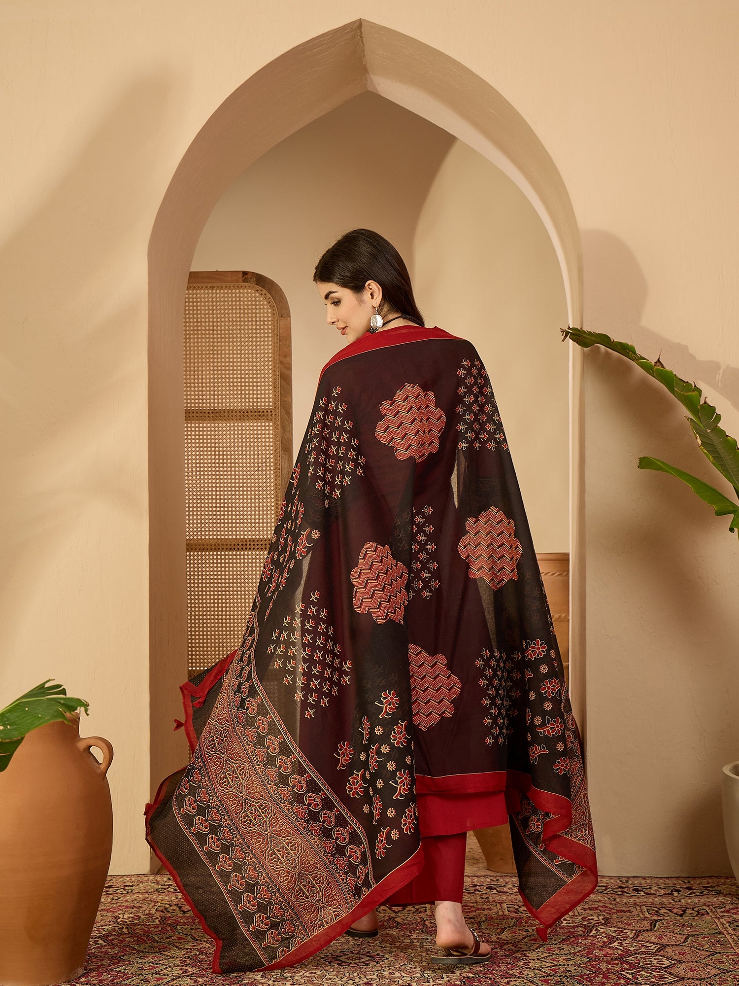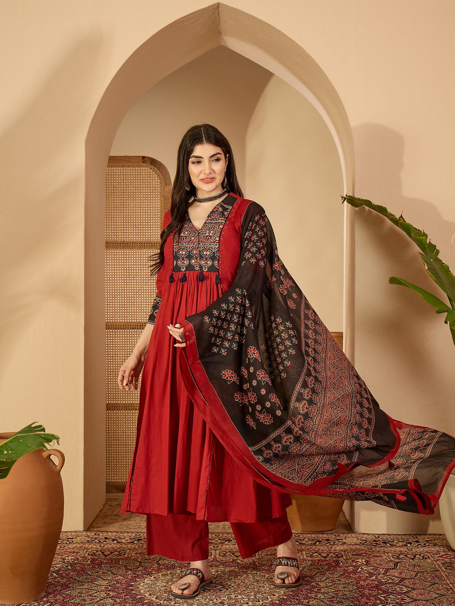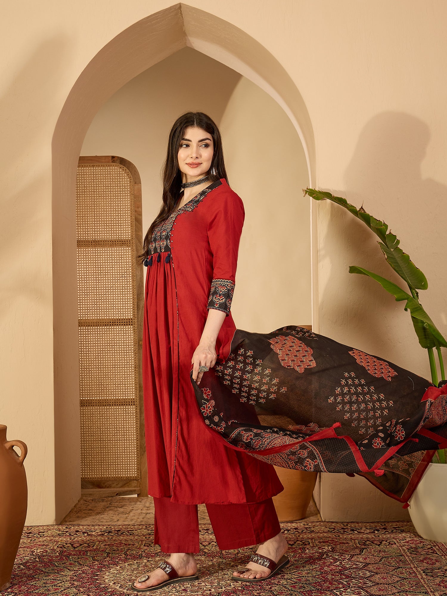 Red Rayon Calf Length Solid 3/4 Sleeve V-Neck Flared Kurta Suit Set adds a refined charm to your wardrobe with its thoughtfully crafted silhouette. Light, comfortable and stylish, it works well for daily use, informal meet-ups or relaxed occasions, keeping you effortlessly fashionable.