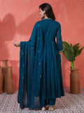 Upgrade your wardrobe with Teal Cotton Calf Length Printed 3/4 Sleeves Angrakha Anarkali Kurta Suit Set, designed for a chic and versatile appeal. The silhouette falls beautifully, giving a flattering shape while keeping the outfit breathable. A perfect pick for casual gatherings, office wear and everyday elegance.