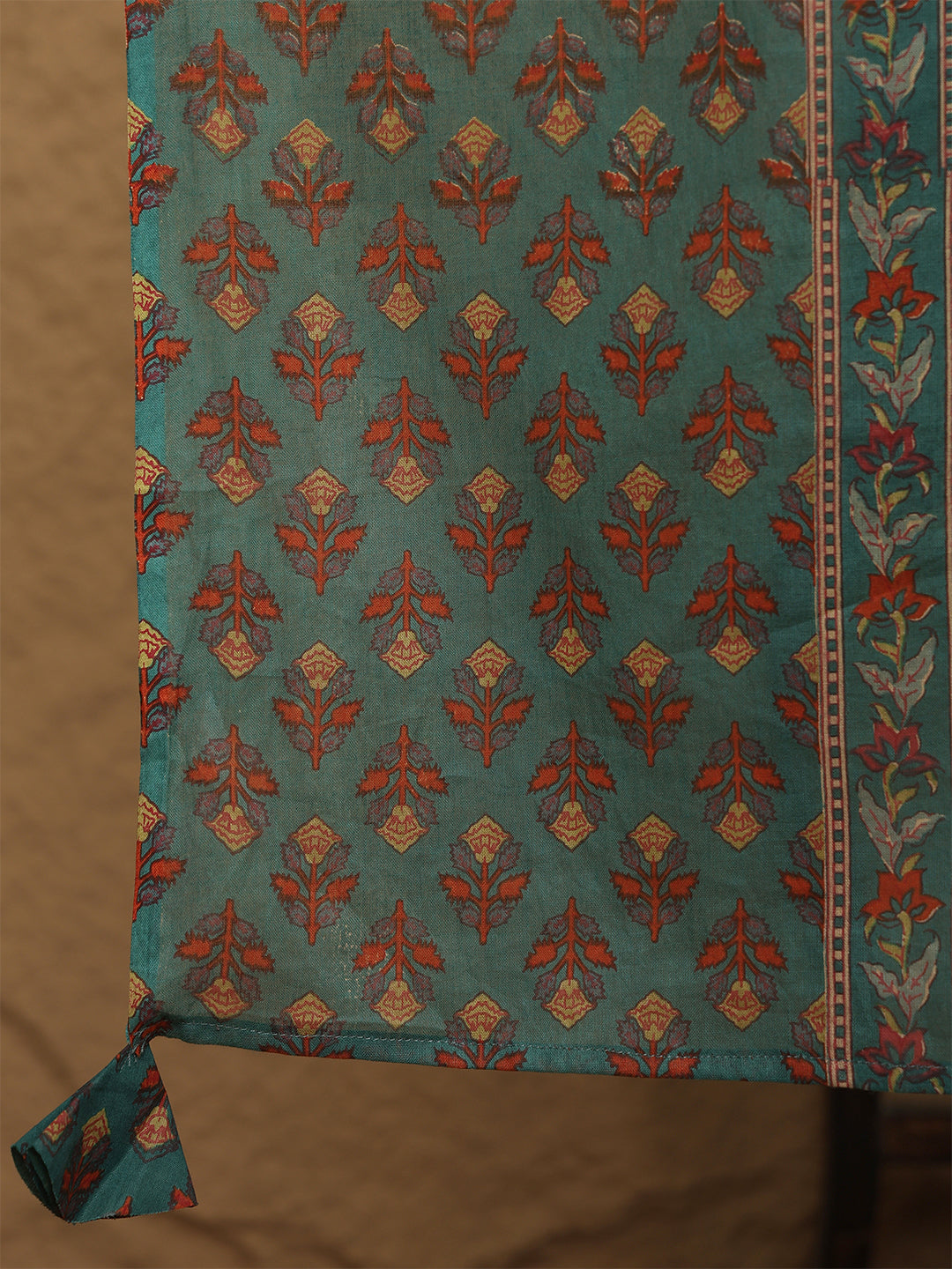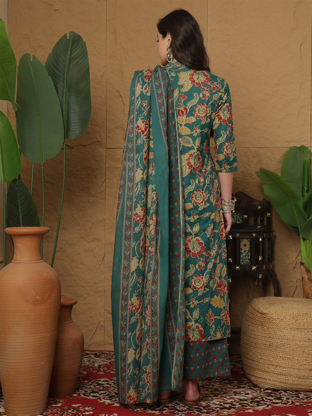 Upgrade your wardrobe with Teal Cotton Calf Length Printed 3/4 Sleeves Mandarin Collar Straight Kurta Suit Set, designed for a chic and versatile appeal. The silhouette falls beautifully, giving a flattering shape while keeping the outfit breathable. A perfect pick for casual gatherings, office wear and everyday elegance.