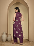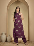 Wine Rayon Calf Length Printed Sleeveless Round Neck A-Line Kurta Suit Set brings a fresh blend of comfort and elegance, crafted with attention to detail. Its design makes it perfect for daily wear as well as casual outings, offering effortless style. Soft fabric ensures comfort through the day, keeping the look refined and graceful.